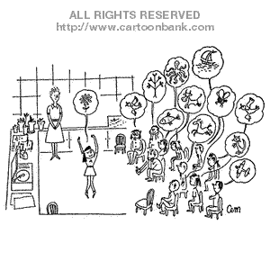 Well, I discovered your blog a couple weeks ago, but never planned on commenting. However, this cartoon was too appropriate to pass up. As a modern dancer, I live this cartoon every day. Modern dance is abstract and aims to provoke a response rather than simply entertain (like ballet). We are constantly presenting ideas in such a way that they will most likely be interpreted in many. This is always a risk but also always an appeal because an idea may be born that did not occur to the artist. This idea now has a life as well. Anyhoo, I loved this cartoon and I enjoy your site very much. Thank you.